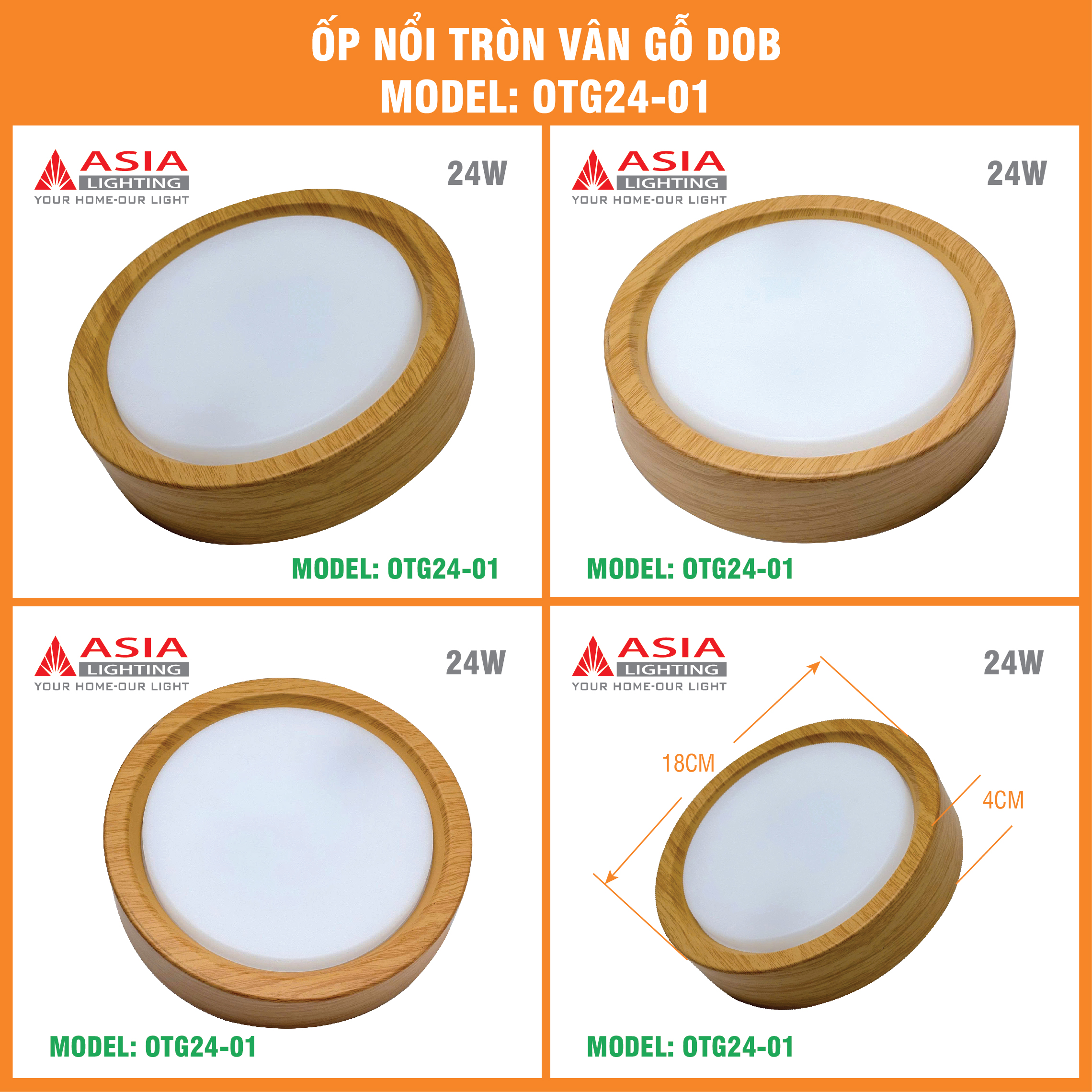 - Chip LED Taiwan siêu sáng. - Thiết kế hoàn toàn mới, tinh tế. - Công nghệ DOB siêu tiết kiệm. - Đa dạng công suất. - Model & Công suất: - OTG24 - 24W - D180 - 40pcs/thùng. - Ánh sáng: trắng, vàng, 03 mầu - Bảo hành 24 tháng.