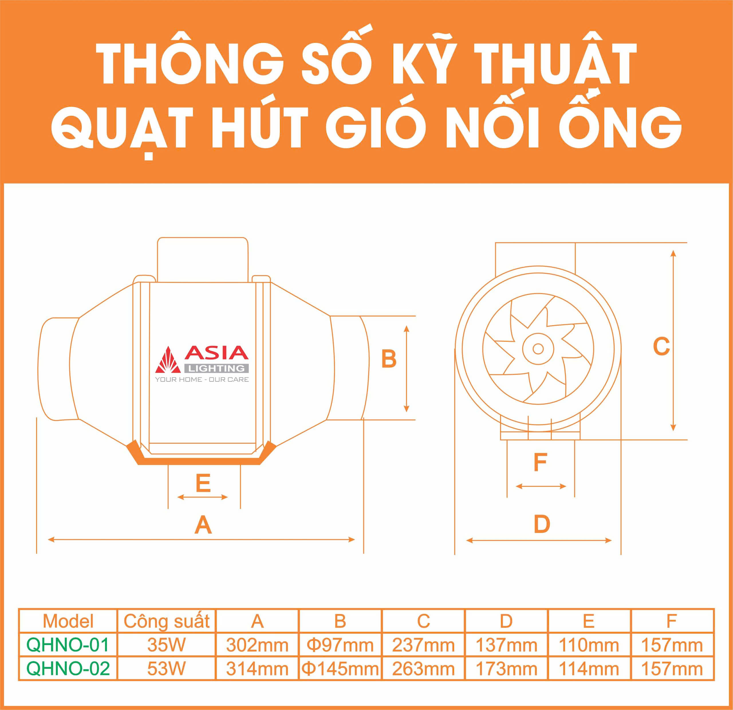 QUẠT HÚT NỐI ÔNG CAO CẤP ASIA LIGHTING - QHNO-53W-02: