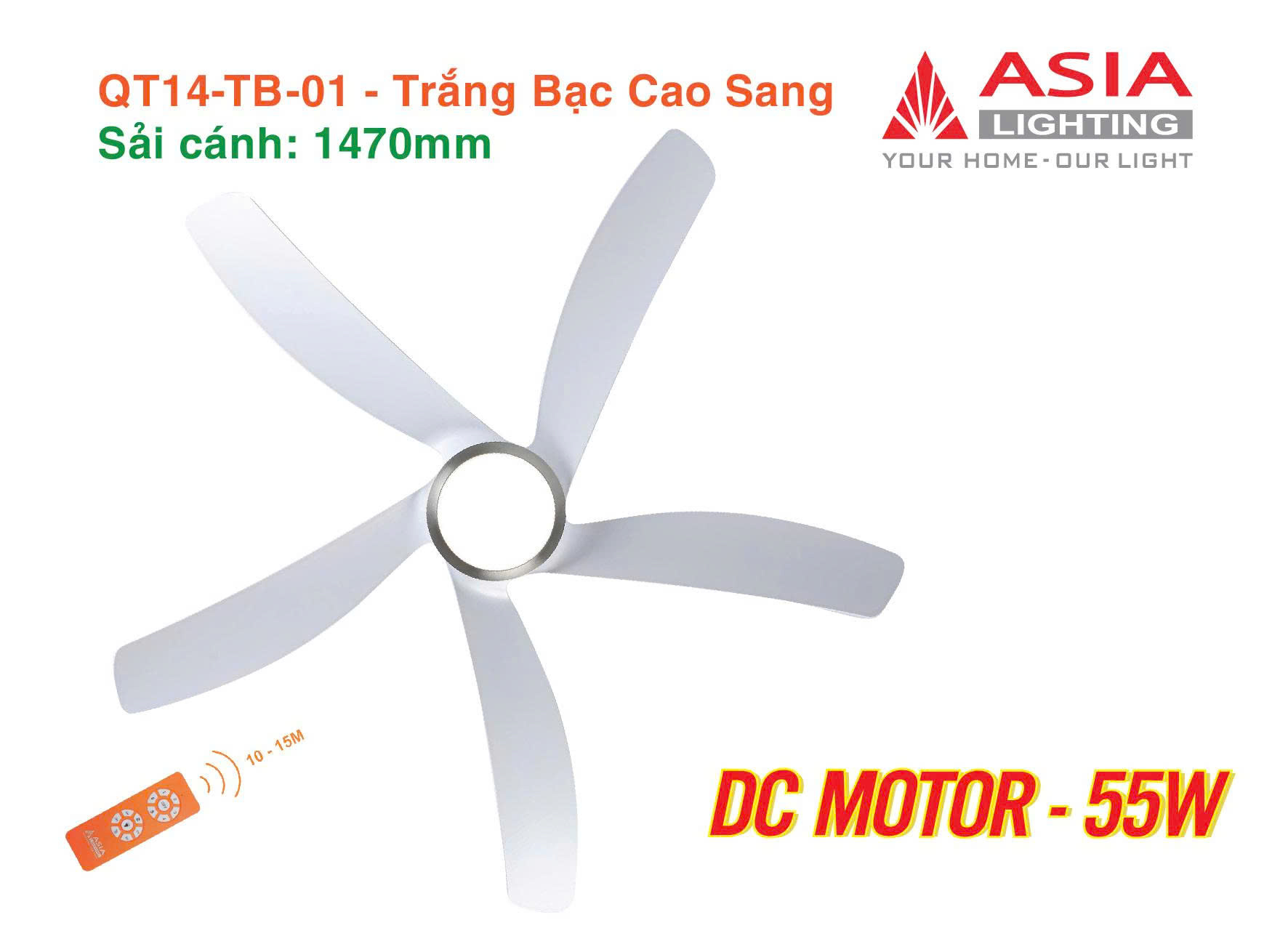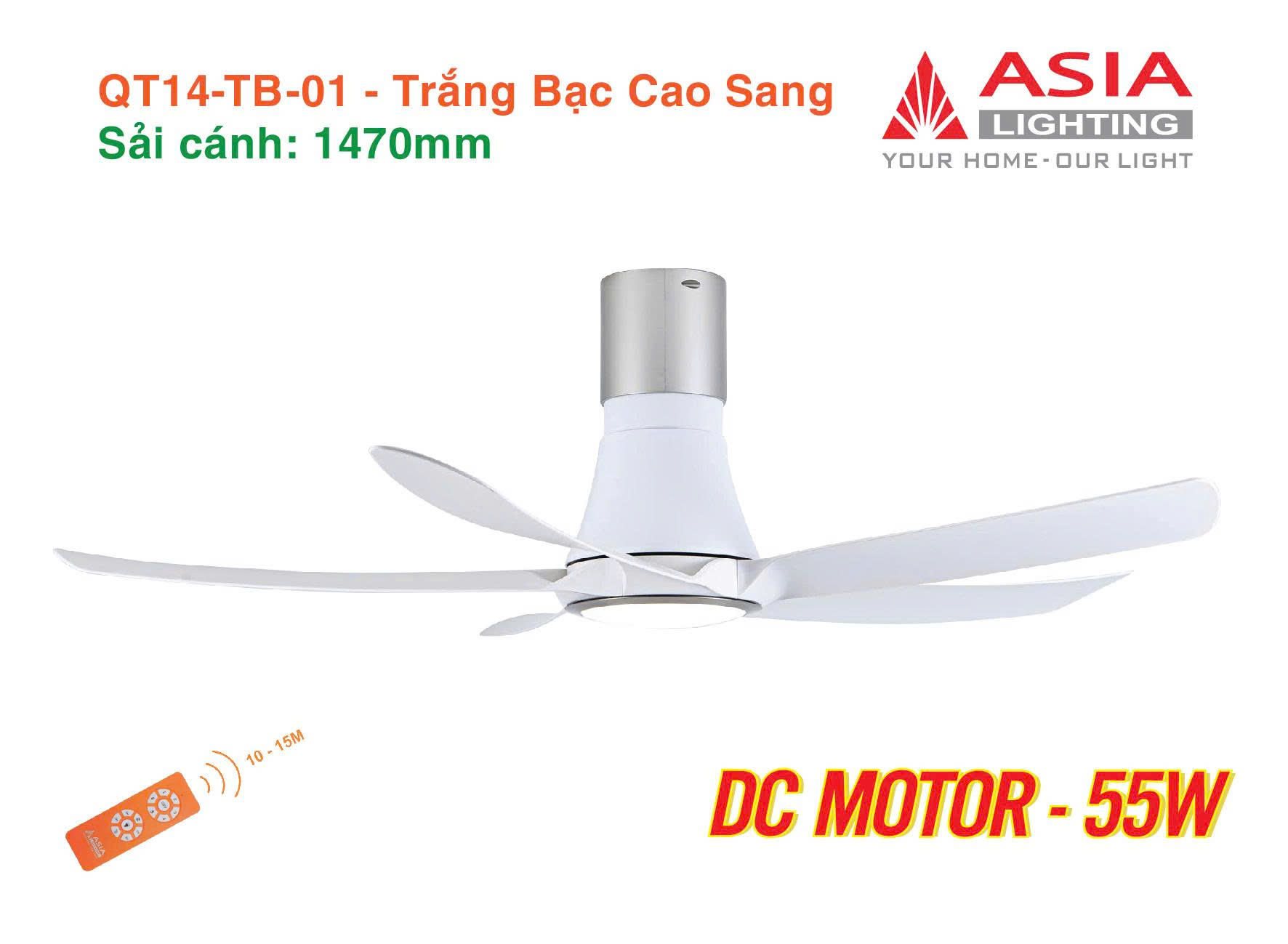 - Công suất động cơ 55W kết hợp sải cánh 1470mm siêu gió mát.