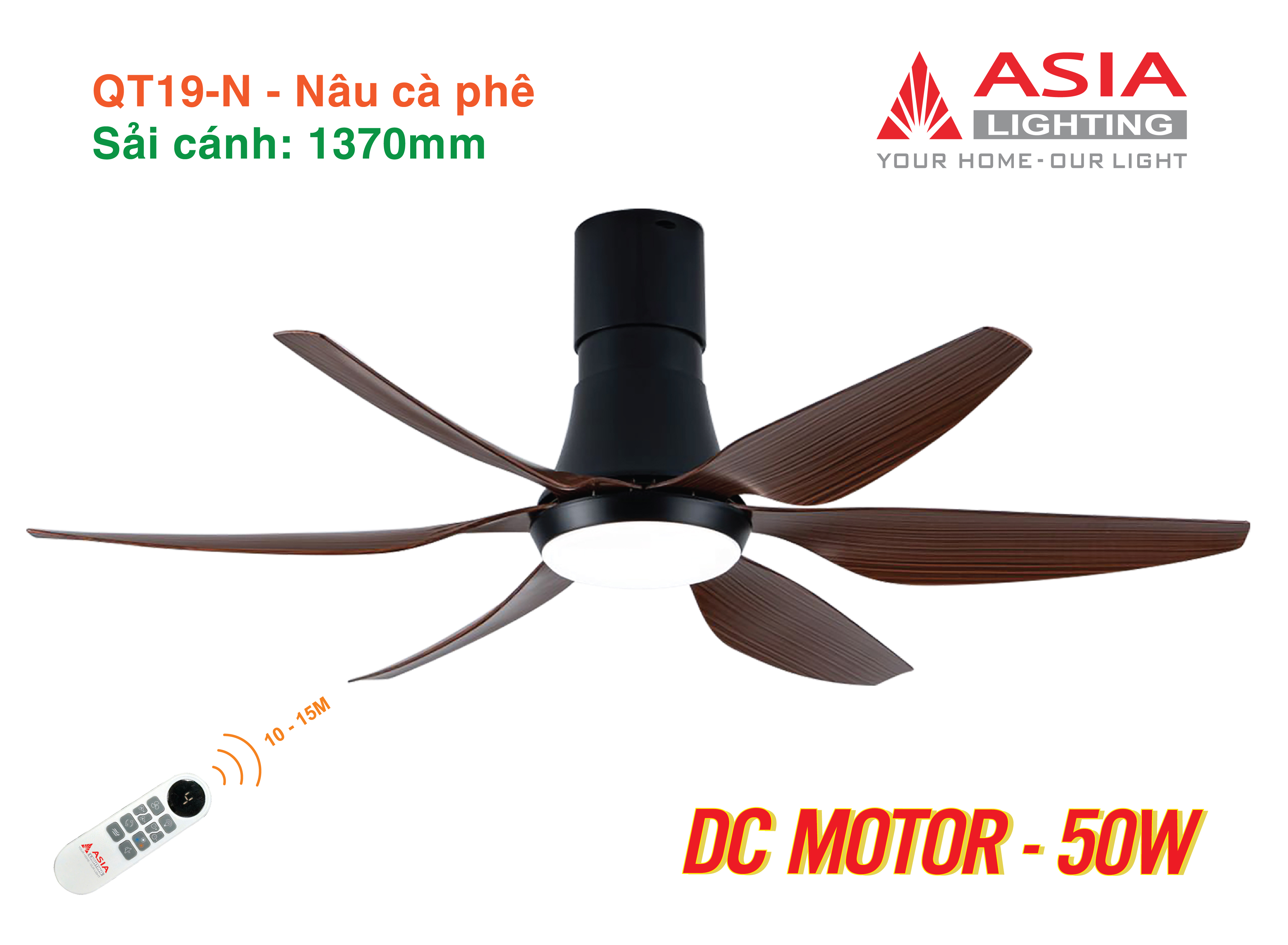 QUẠT TRẦN ĐÈN 6 CÁNH CAO CẤP ASIA LIGHTING - QT19 - SẢI CÁNH 1370MM:
