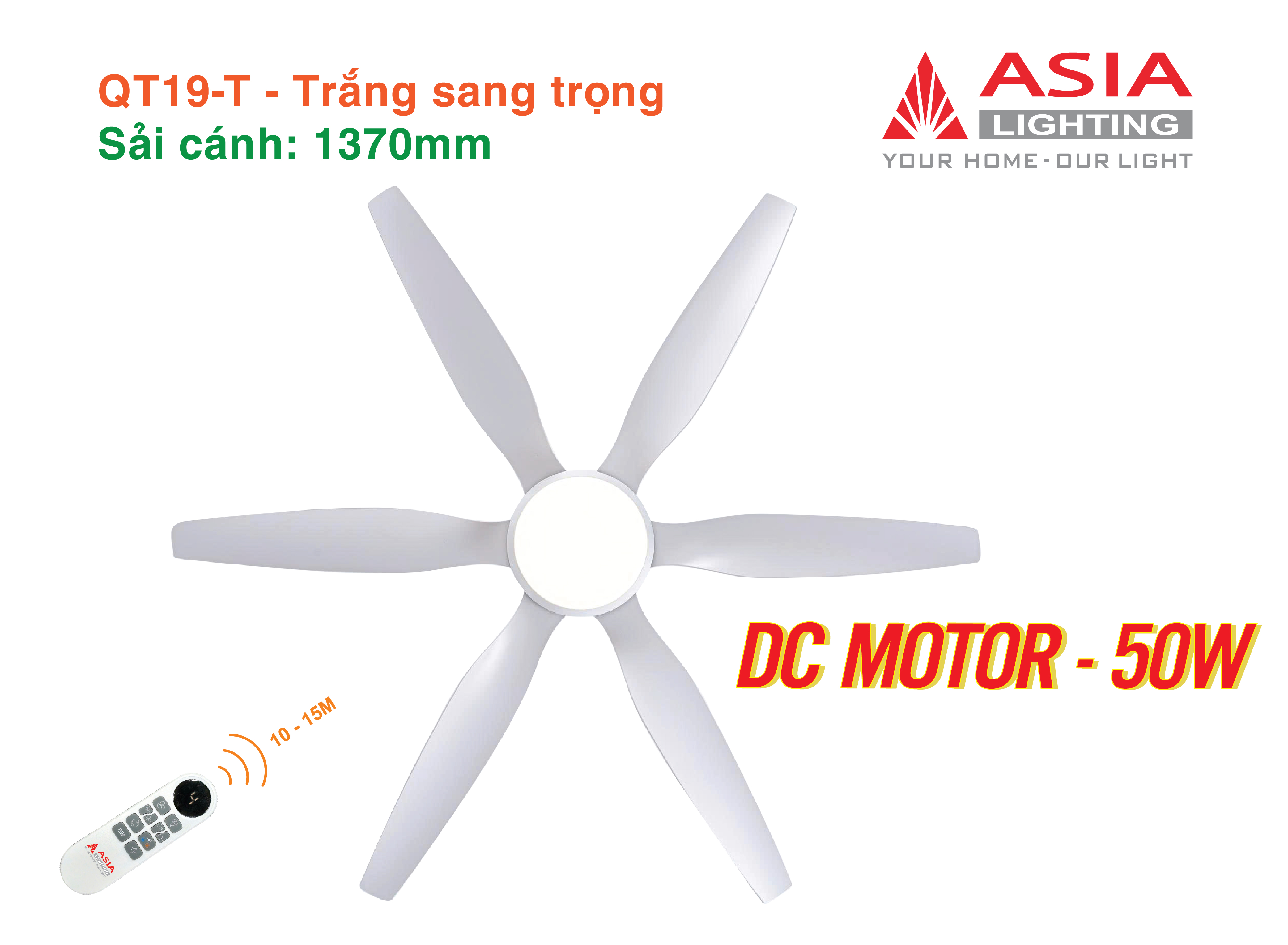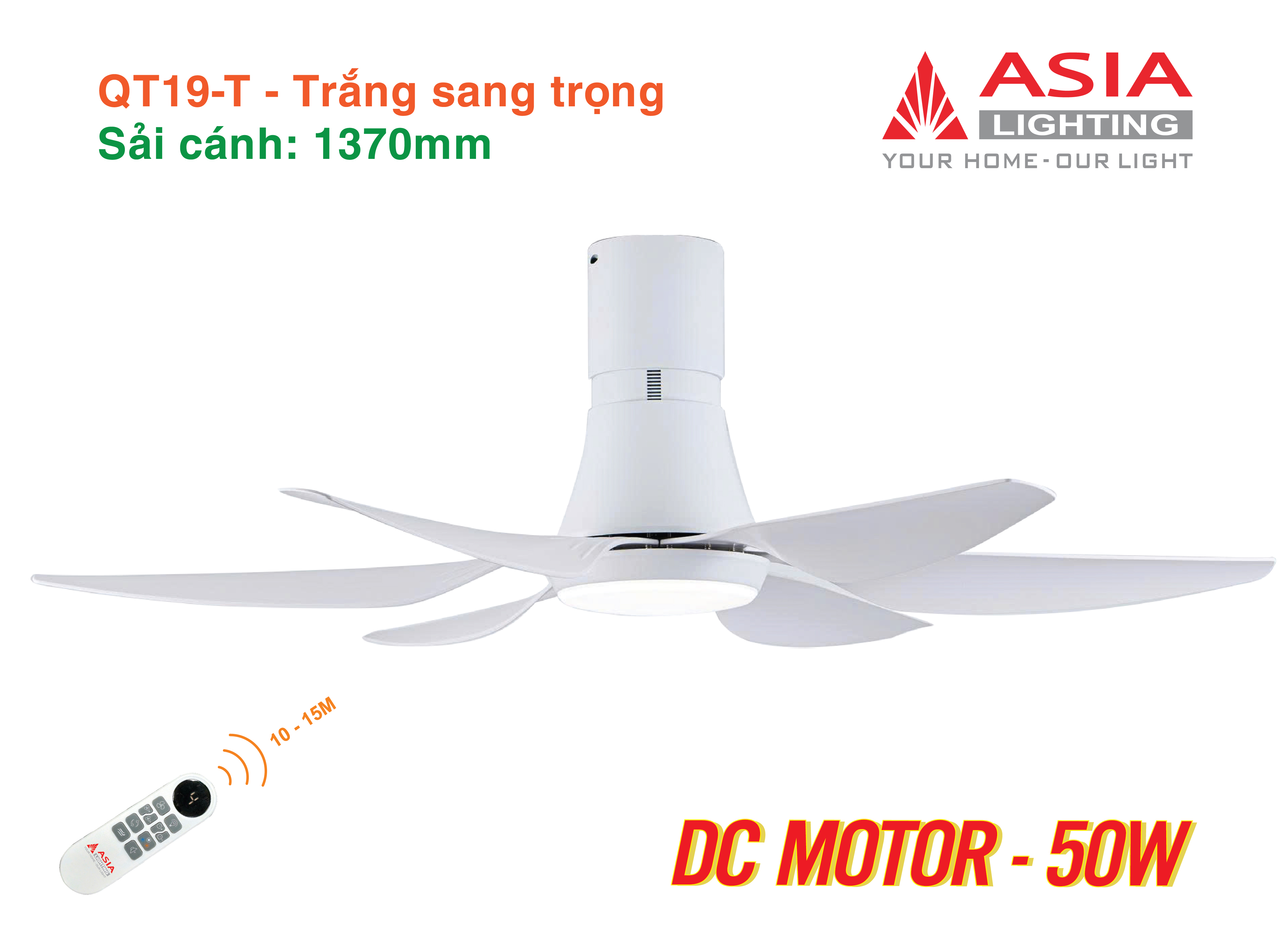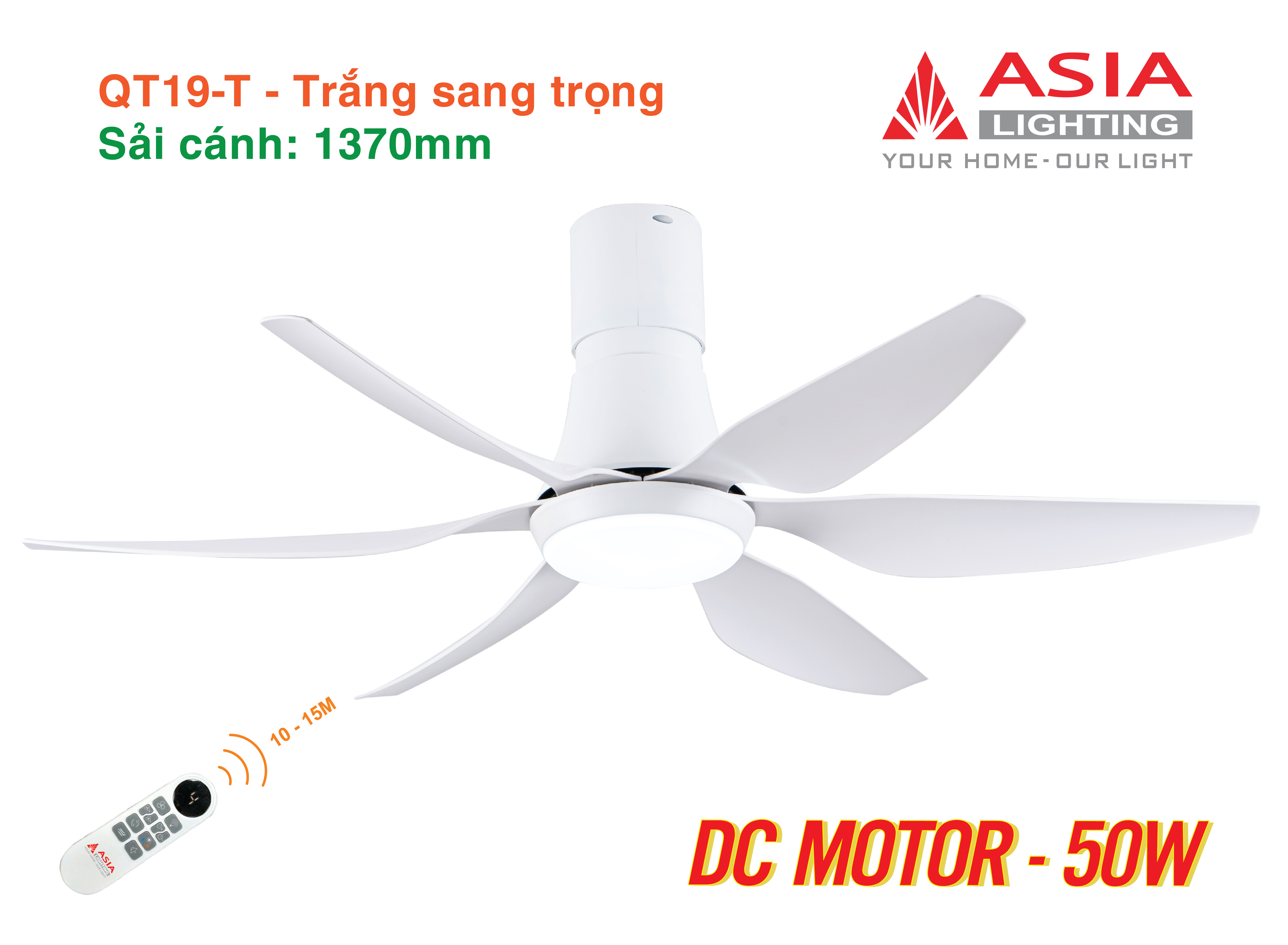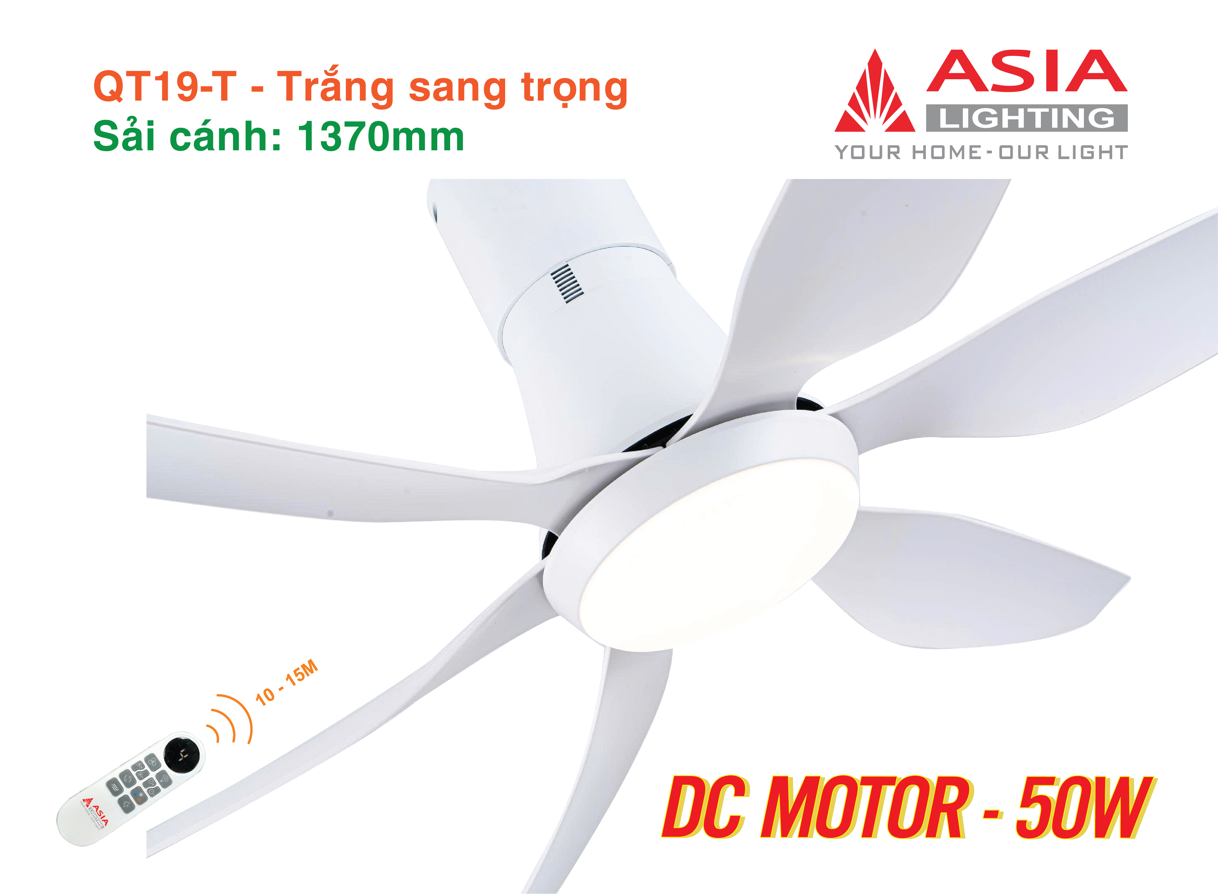 QUẠT TRẦN ĐÈN 6 CÁNH CAO CẤP ASIA LIGHTING - QT19 - SẢI CÁNH 1370MM: