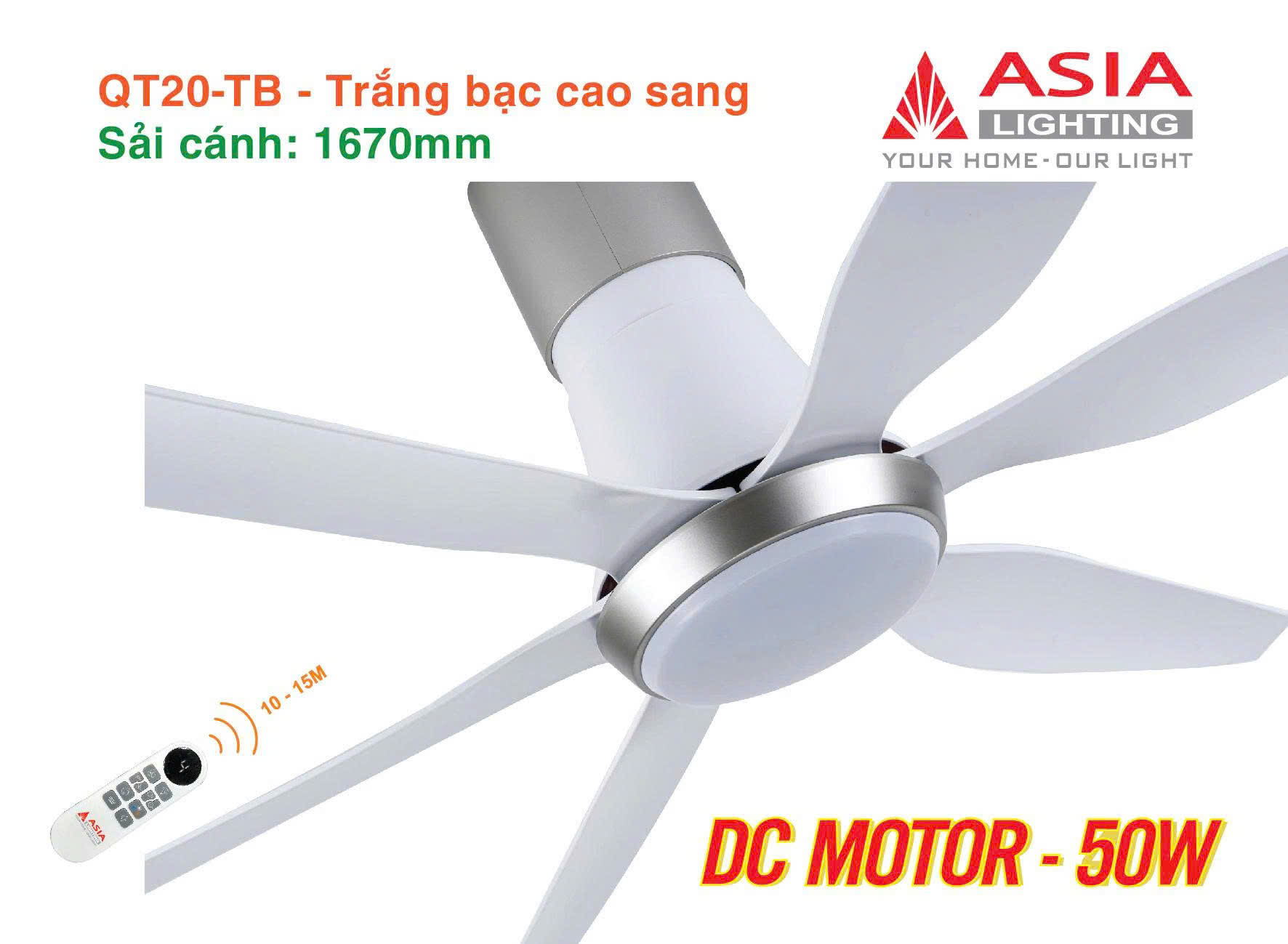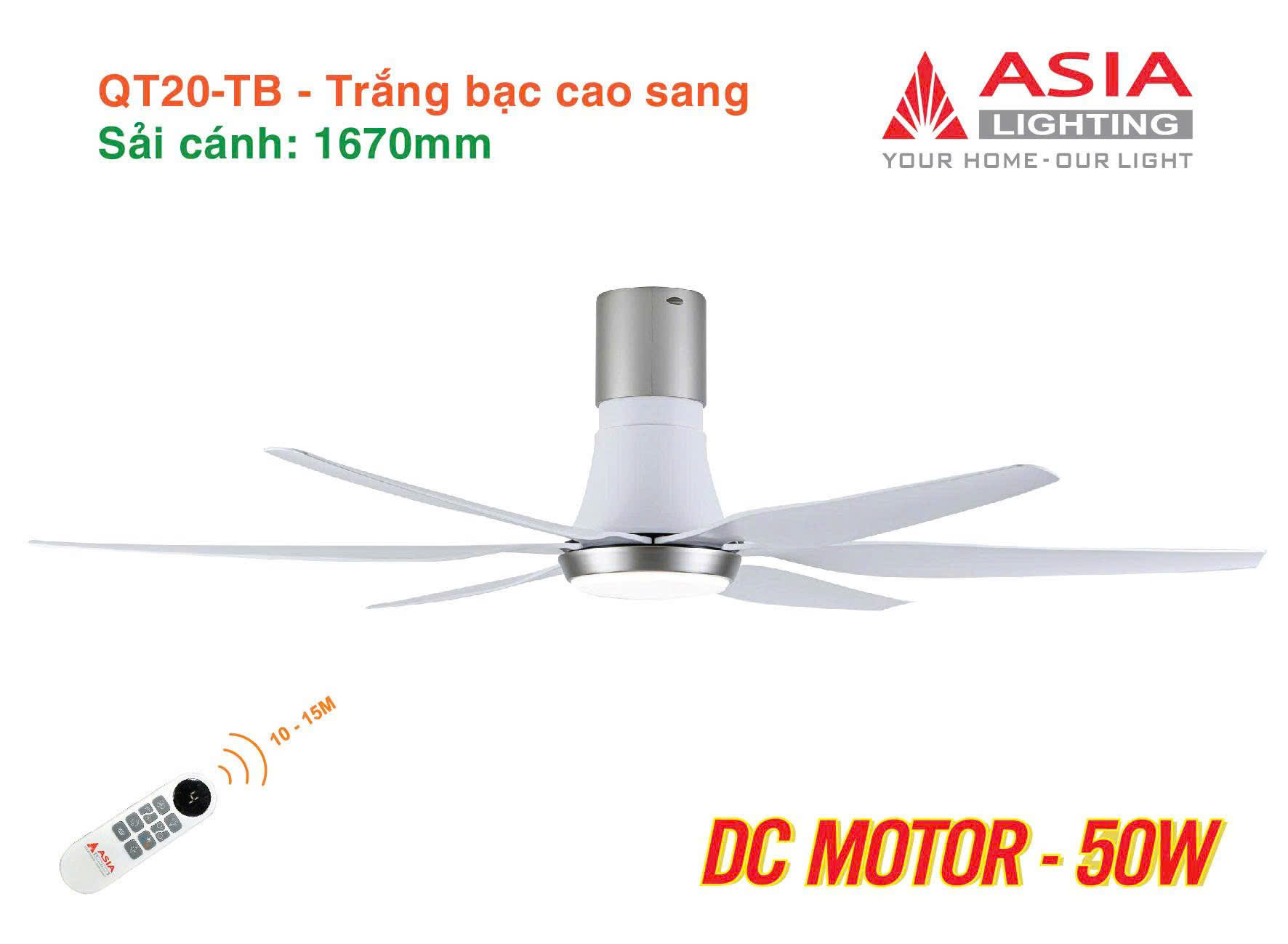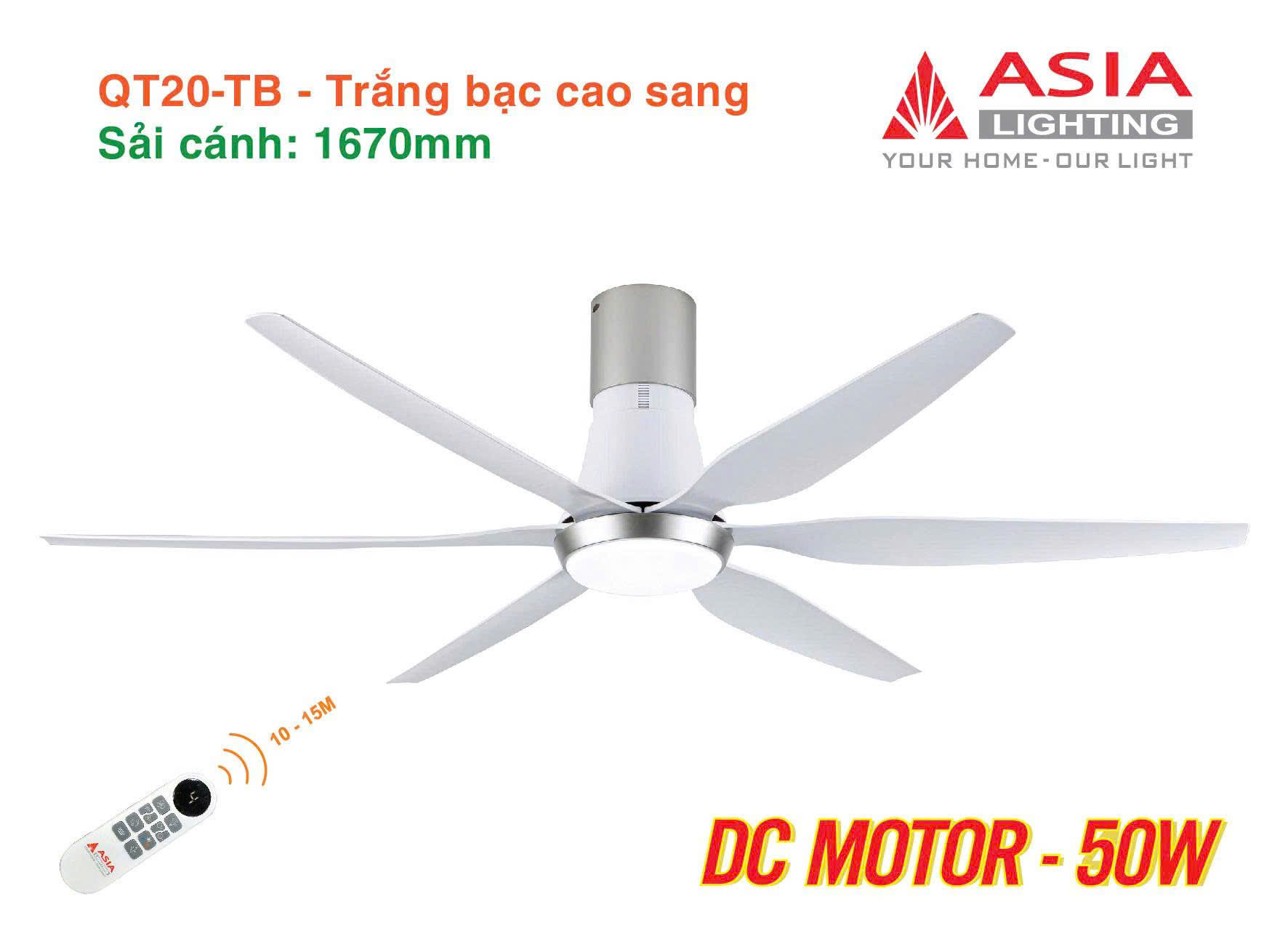 QUẠT TRẦN ĐÈN 6 CÁNH CAO CẤP ASIA LIGHTING - QT19 - SẢI CÁNH 1370MM: