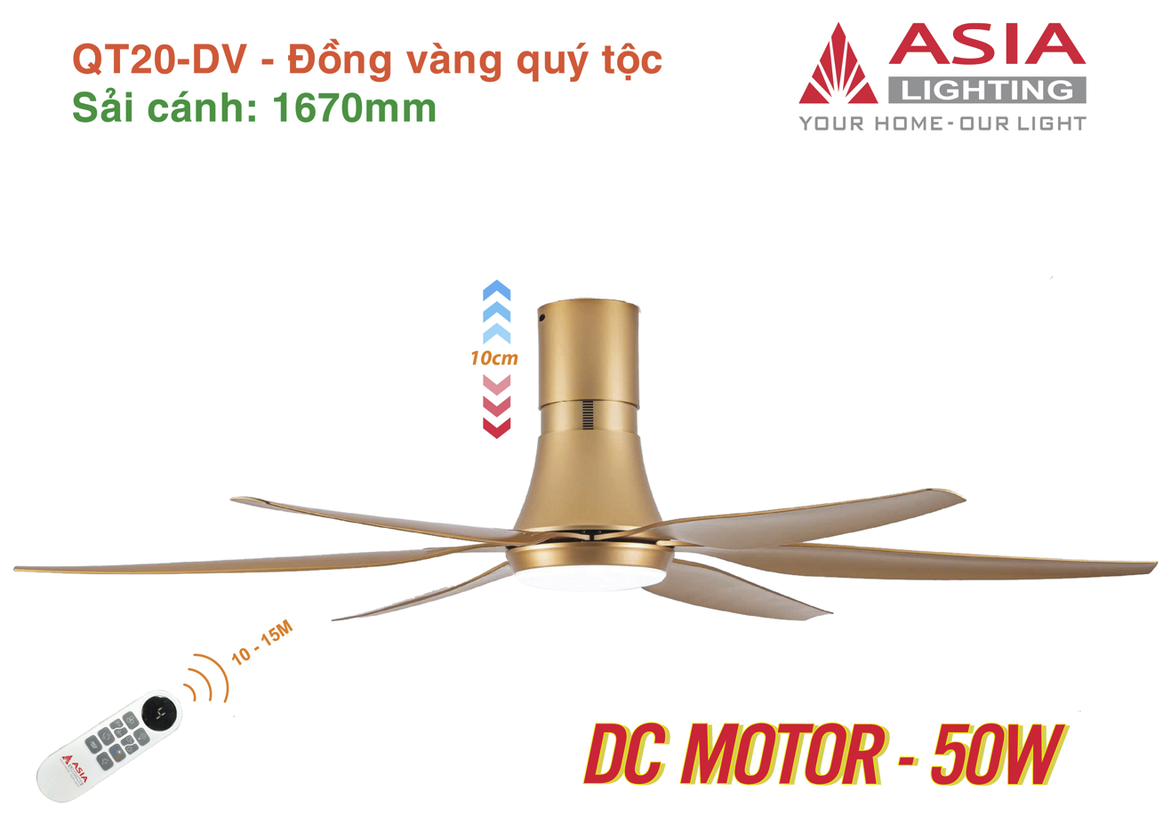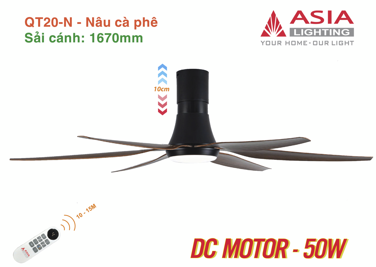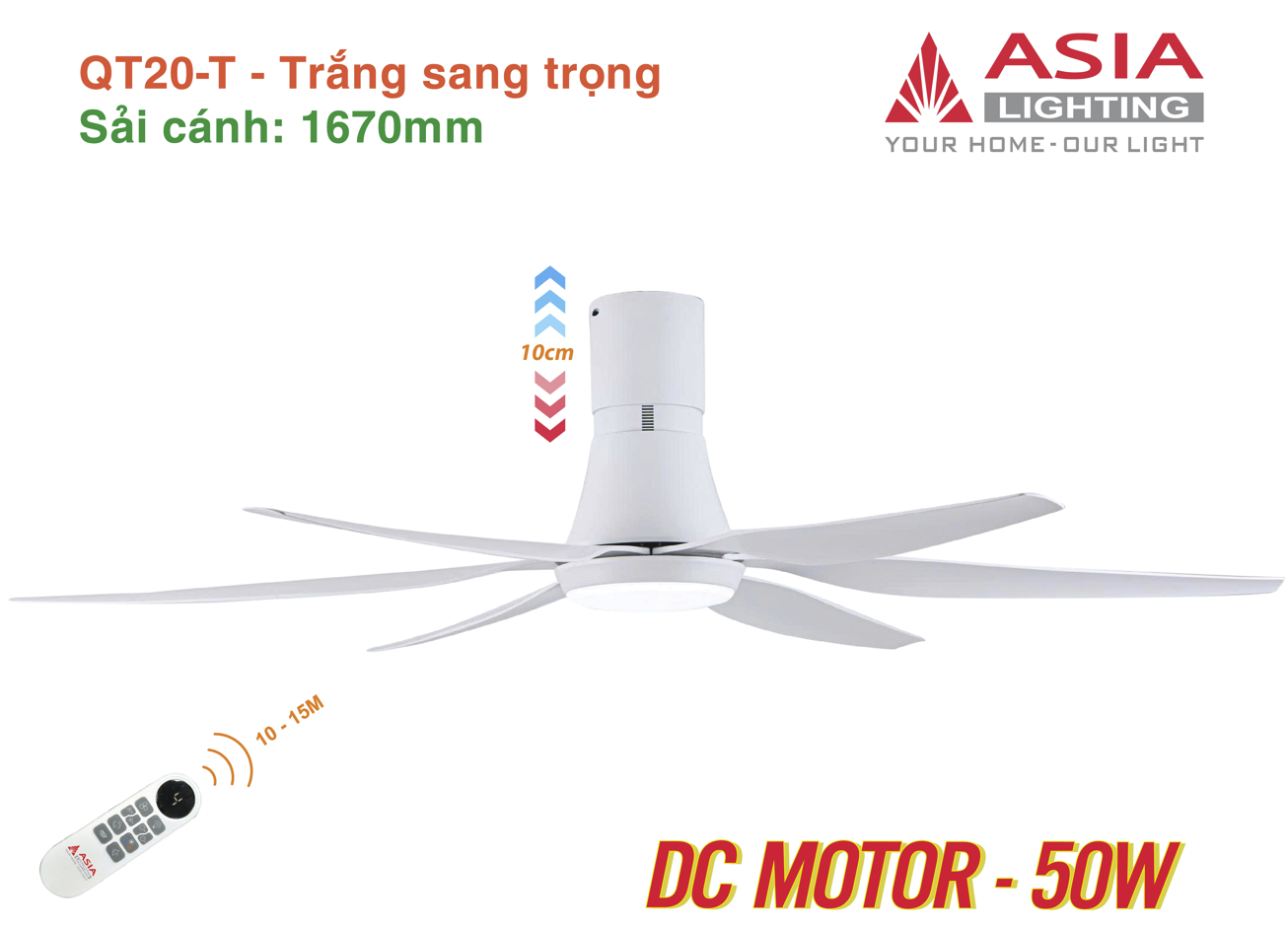 QUẠT TRẦN ĐÈN 6 CÁNH CAO CẤP ASIA LIGHTING - QT20 - SẢI CÁNH 1670MM: