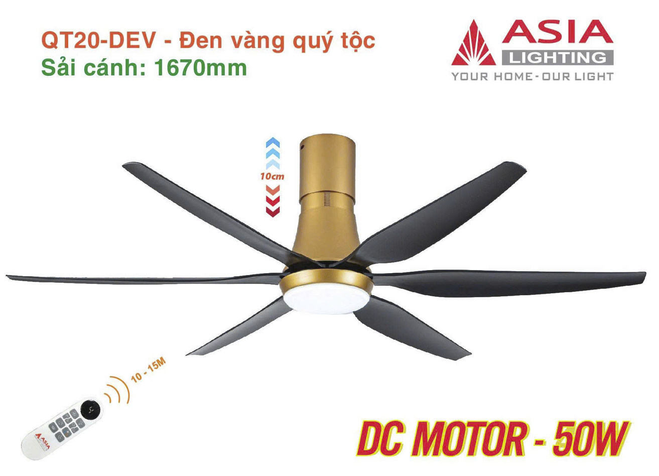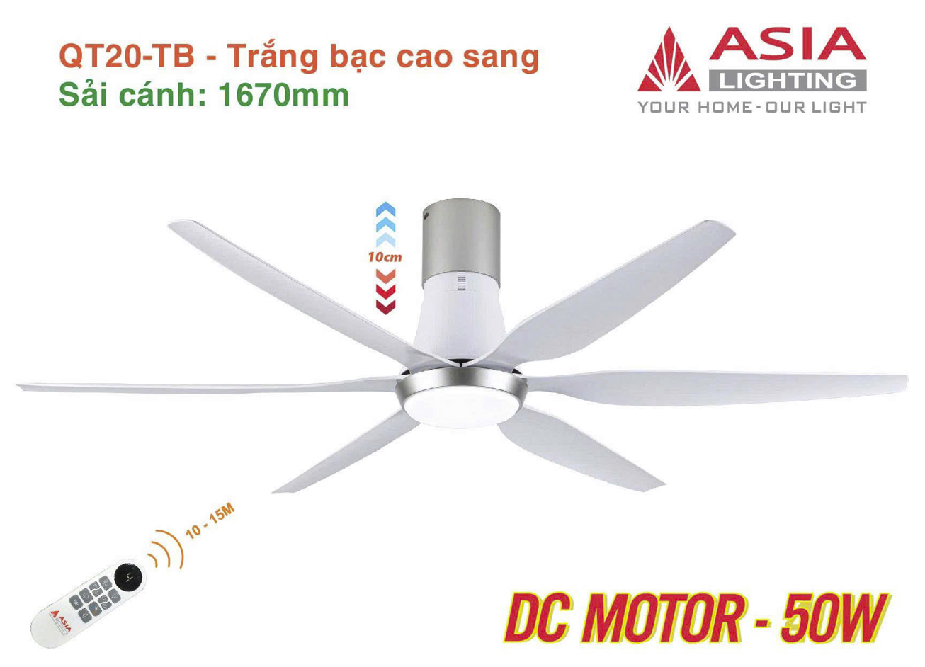 QUẠT TRẦN ĐÈN 6 CÁNH CAO CẤP ASIA LIGHTING - QT20 - SẢI CÁNH 1670MM: